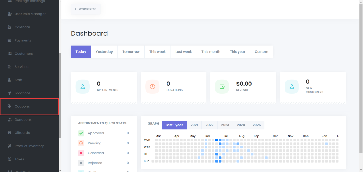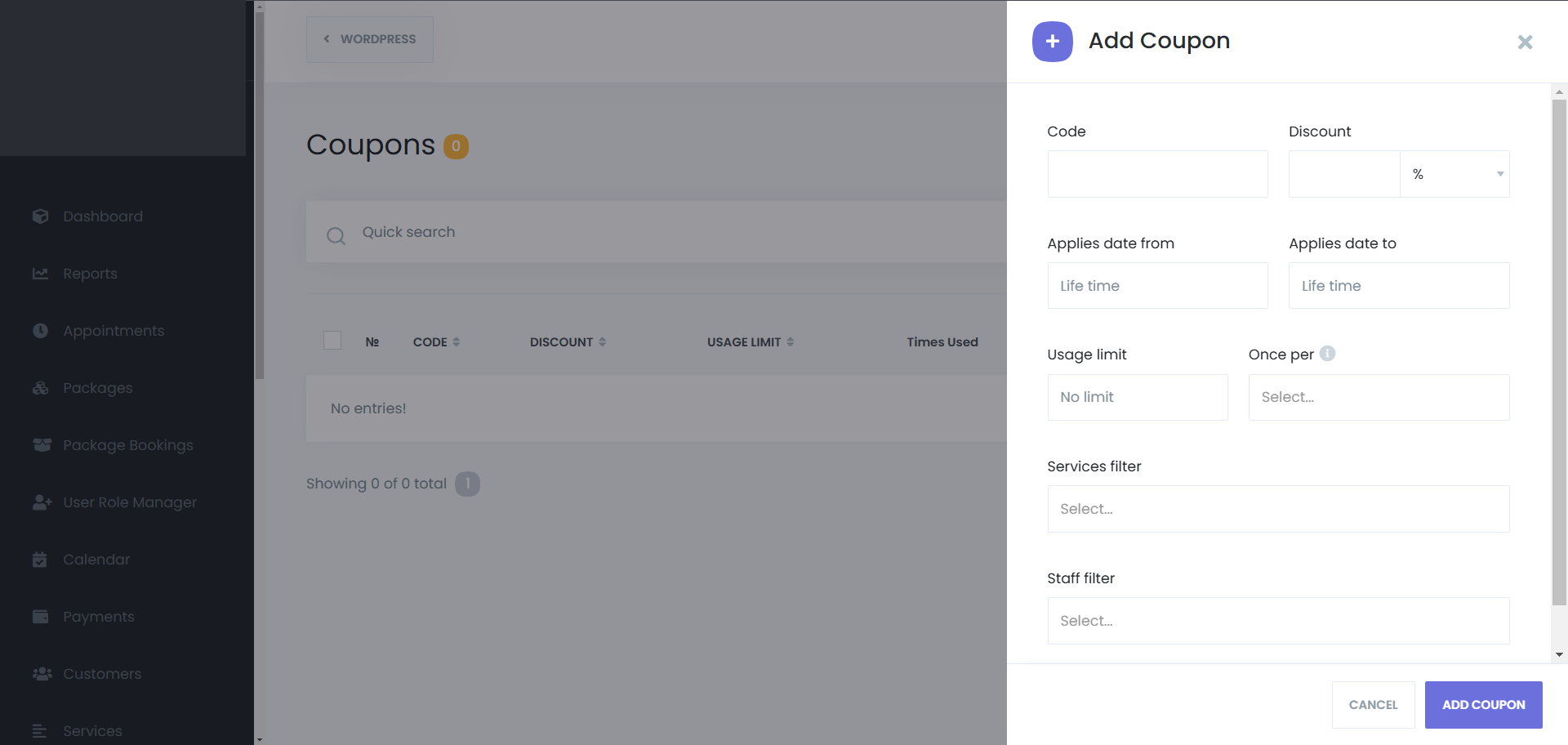 - Using coupons while creating appointments from the admin panel