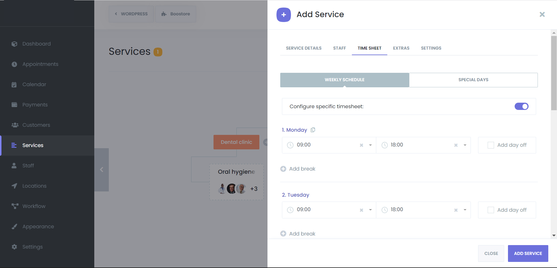 • Use service hours to limit when specific services can be booked (e.g., only mornings).